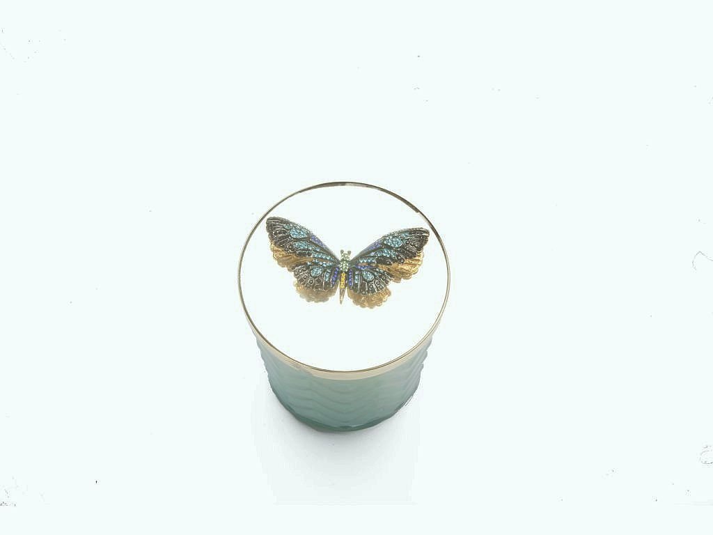 Design: skleněná nádoba s herringbone vzorem v Tiffany modré, zlaté víčko s dekorem motýlka 🦋