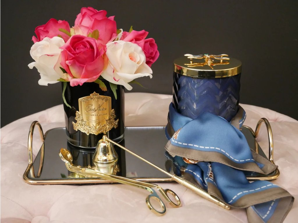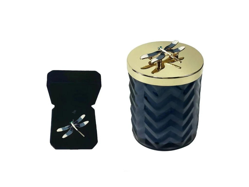 Svíčka Côte Noire – Herringbone s luxusním šátkem a víčkem Vážka – Navy & Gold – Un Jardin à Versailles (600 g)