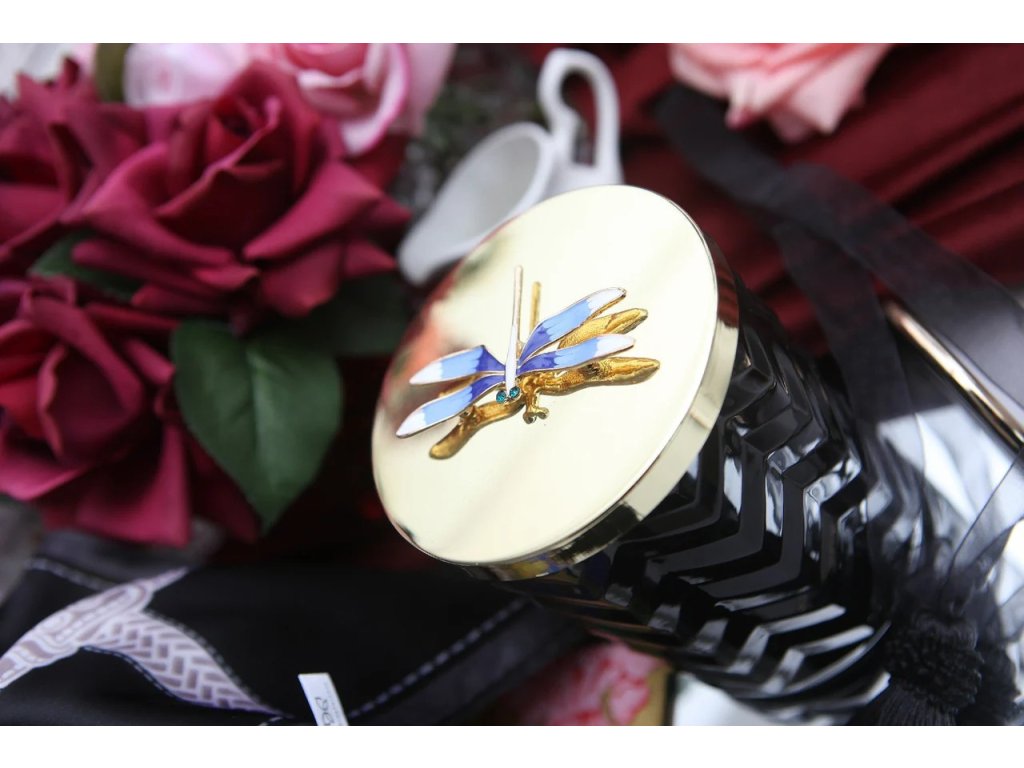🏺 Luxusní herringbone sklo s víčkem, doplněné o jemný hedvábný šátek a designovou brož ve tvaru Vážky jako dekoraci