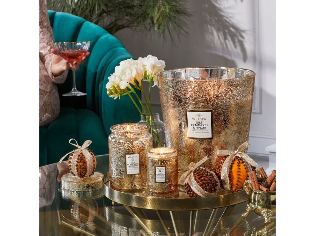 Svíčka Voluspa Gilt Pomander & Hinoki Large Jar Candle (510 g) ✨🌲🍊