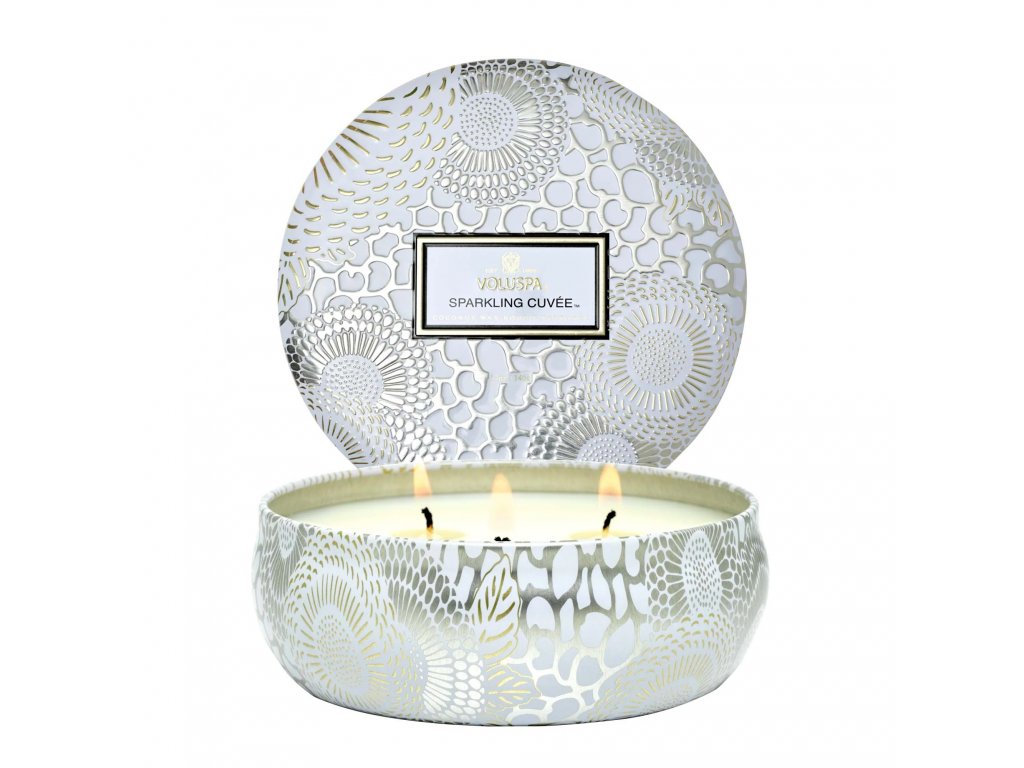 Dopřejte si jedinečný zážitek se svíčkou Sparkling Cuvee 3-Wick Tin Candle od Voluspa a vytvořte si domov plný pohody a oslav! Přidejte ji do košíku ještě dnes! 🛒💖